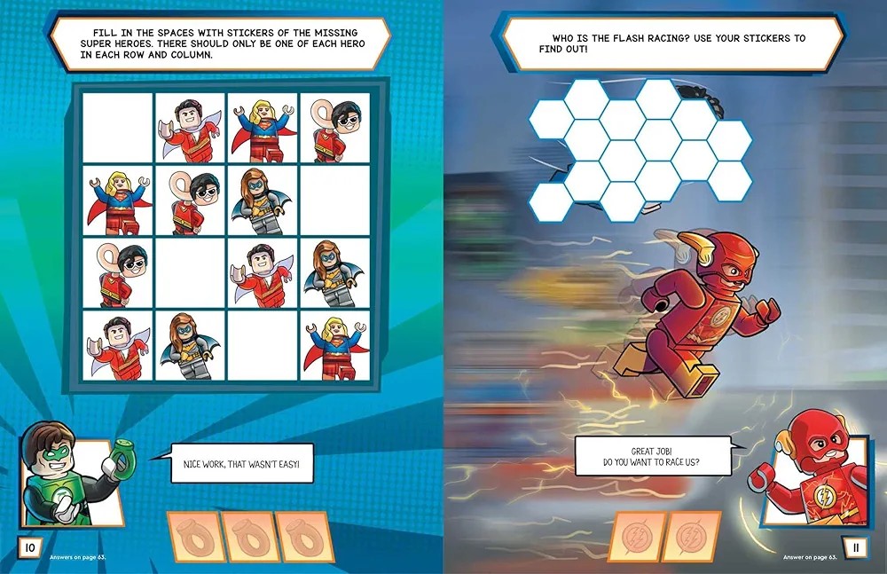 It's time to tackle some action-packed missions with the awesome LEGO® DC Comics Super Heroes! Stop the Super-Villains by solving puzzles, escaping mazes, decorating super sticker scenes, and collecting sticker reward from the heroes as you go. What are you waiting for?