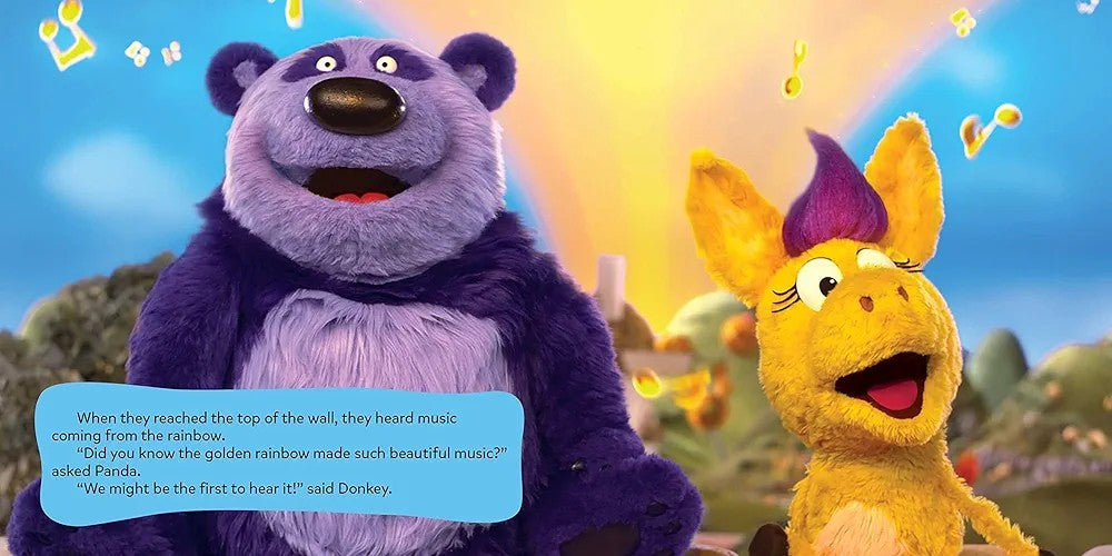 Join Donkey Hodie and her pal Purple Panda as they go on a hee-hawesome adventure and follow a golden rainbow to search for a magical bowl of Golden Crunchdoodles! This story includes a golden rainbow pop-up at the end of the book to make it even more magical!